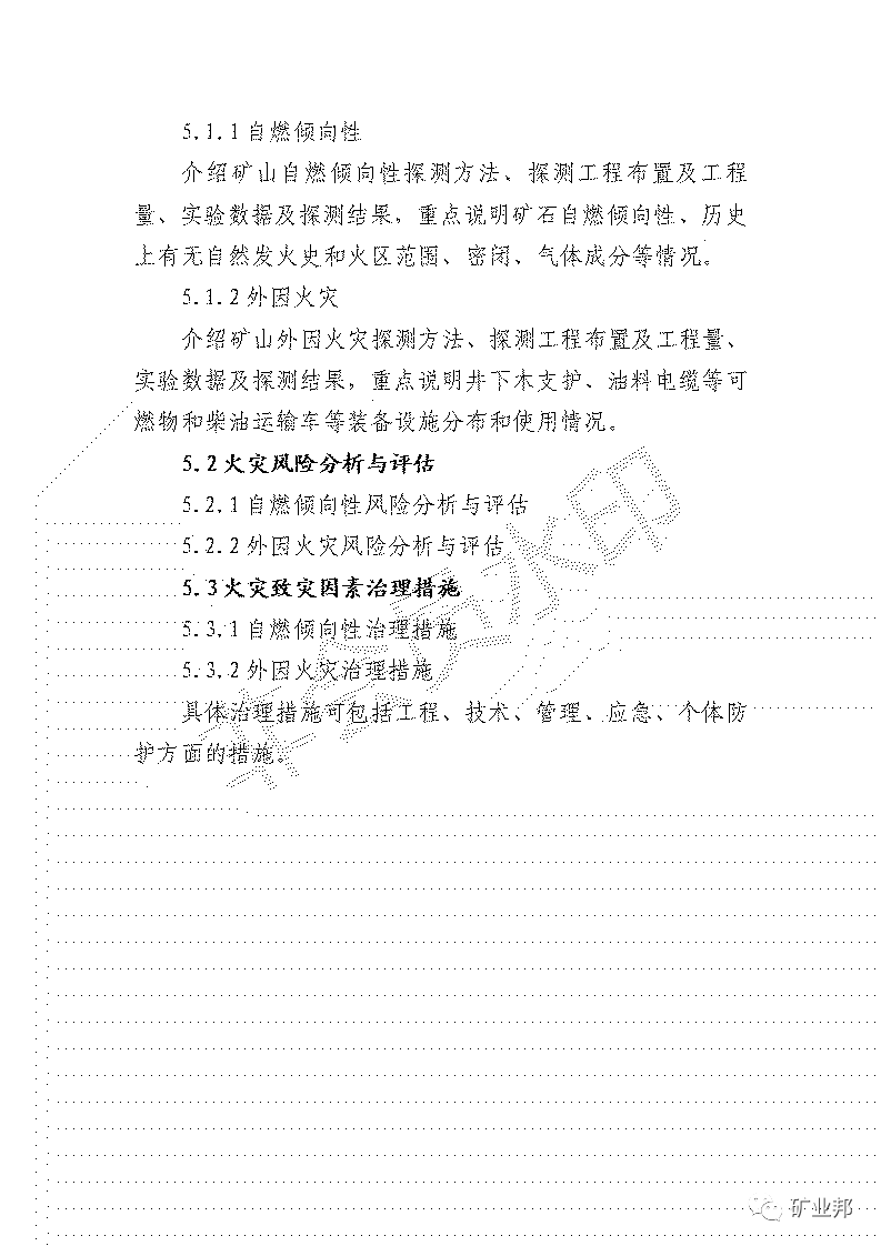 1.自燃傾向性。查明礦石自燃傾向性、歷史上有無自然發(fā)火史和火區(qū)范圍、密閉、氣體成分等情況;采取有效措施進(jìn)行治理。