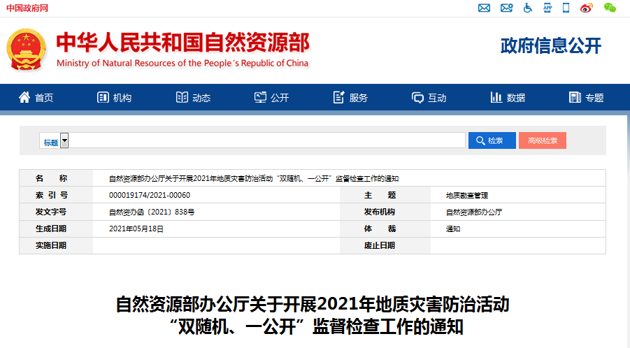 近日,自然資源部辦公廳發(fā)出通知,就做好2021年地質(zhì)災(zāi)害防治活動“雙隨機(jī)、一公開”監(jiān)督檢查工作進(jìn)行部署,以進(jìn)一步規(guī)范地質(zhì)災(zāi)害防治活動,不斷提升地質(zhì)災(zāi)害防治工作質(zhì)量。